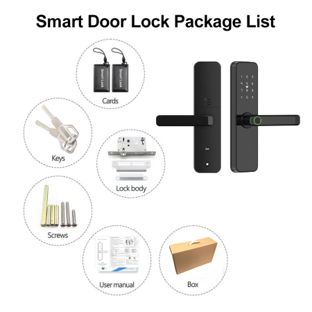| Unlock method | App, Fingerprint, Pass code, RFID Card, Manual key |