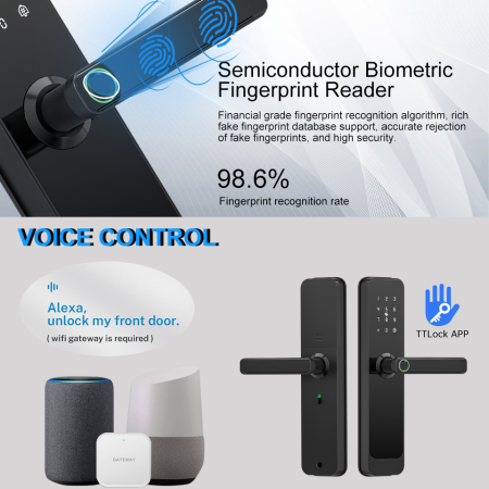 - App,Fingerprint,Passcode,Card ,Manual Key Unlocking